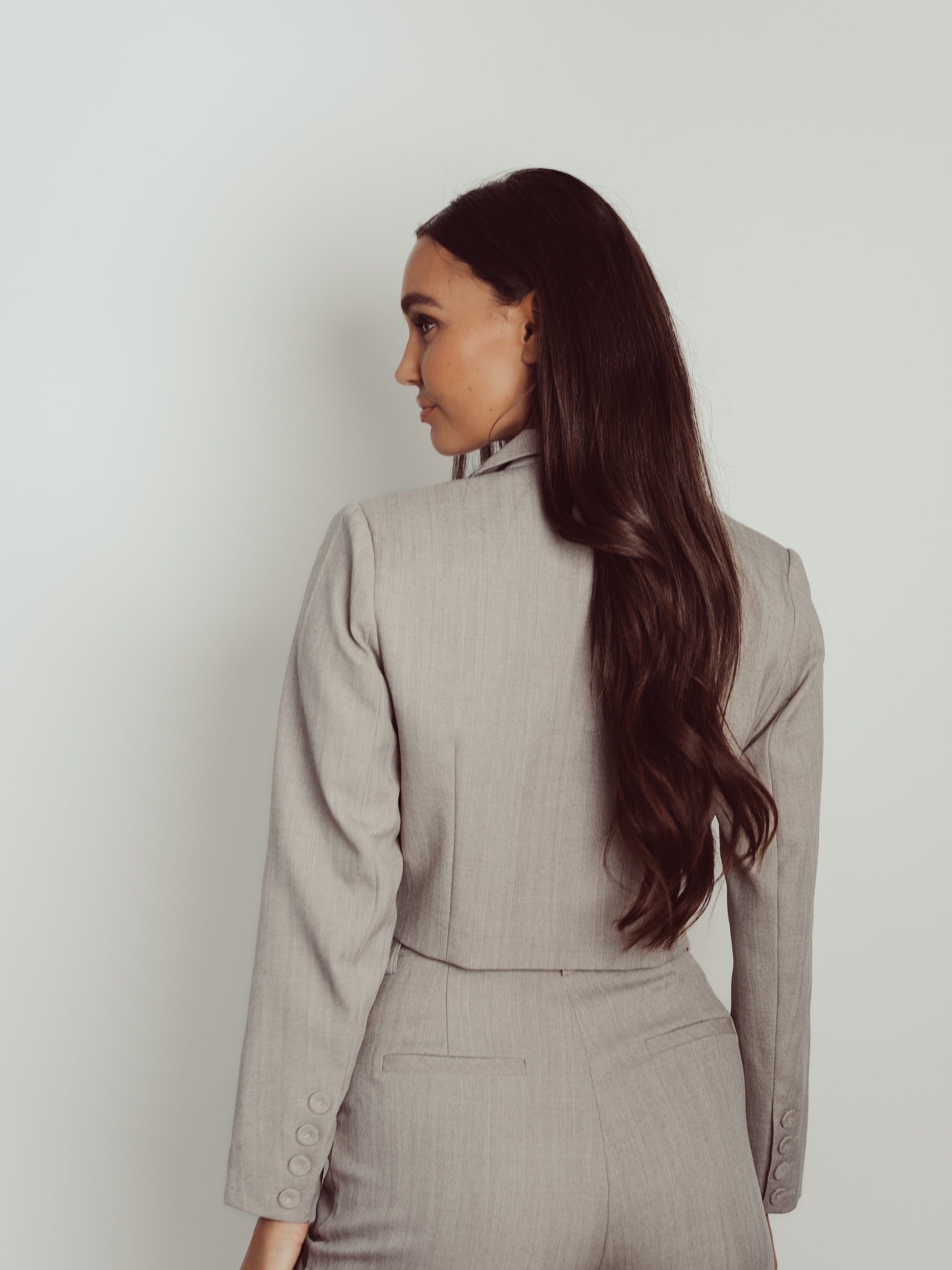 Hoe leuk is deze cropped blazer van gemêleerde stof?
