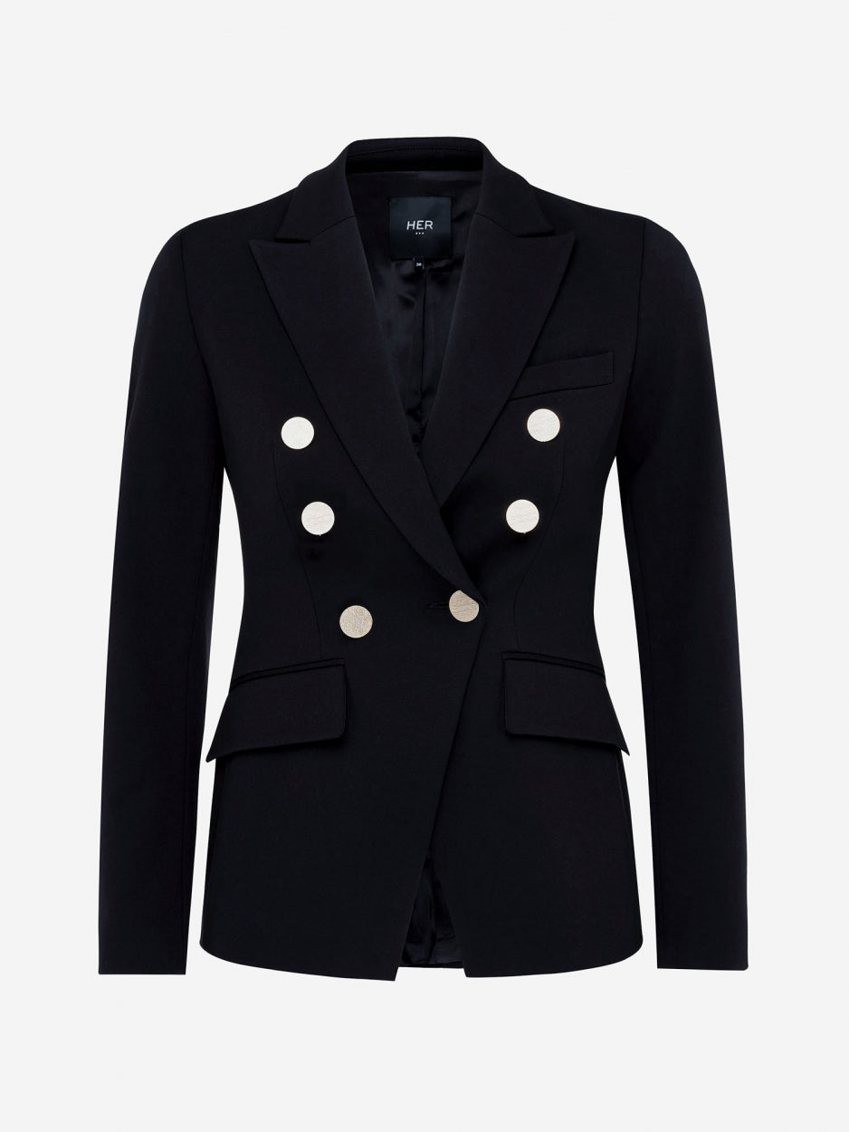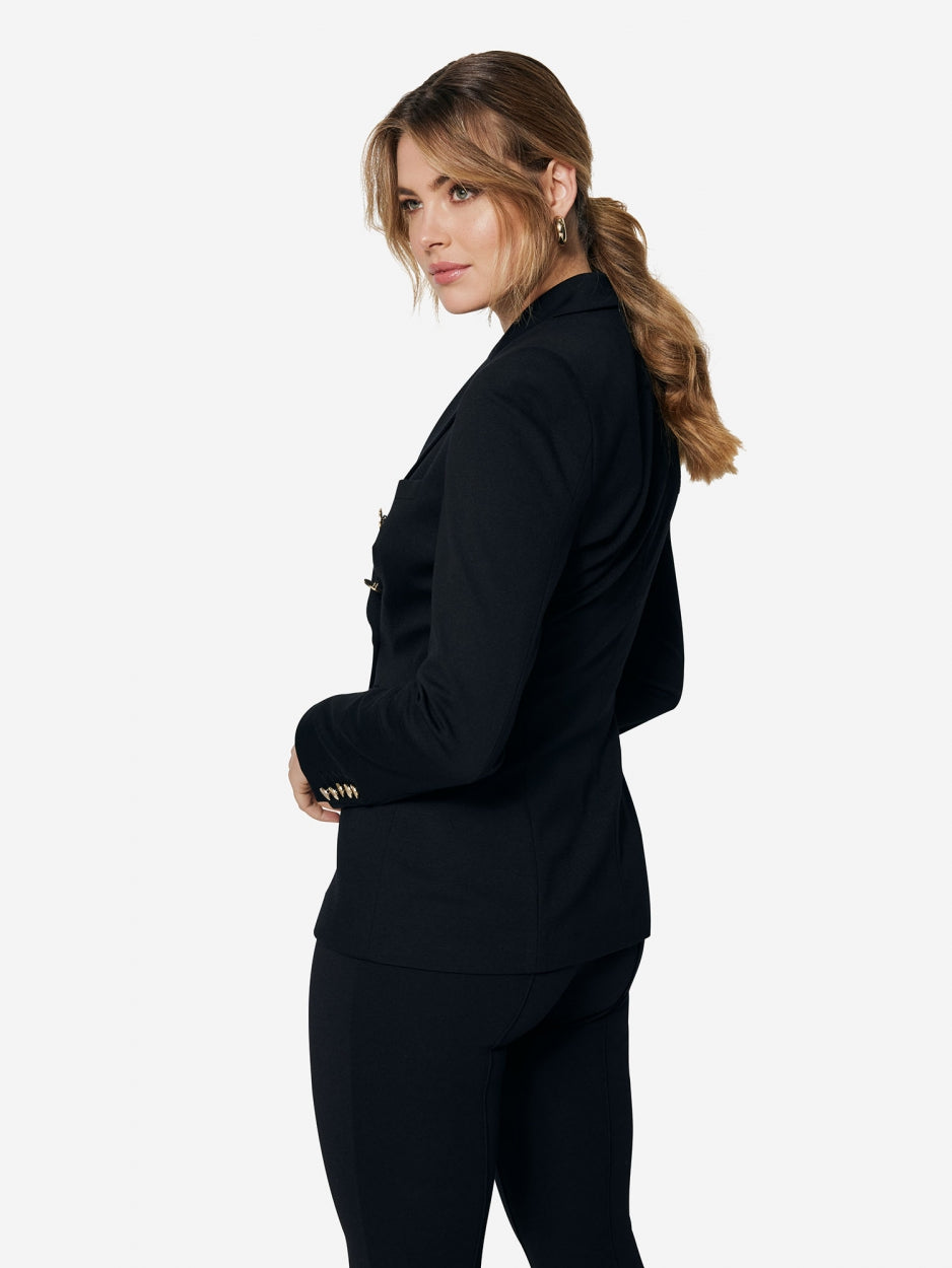 Deze stijlvolle double breasted blazer heeft een nonchalante, fitted look. Dit item is gemaakt van de meest soepele jersey stof en de goudkleurige knopen hebben een vintage look voor een chic effect.