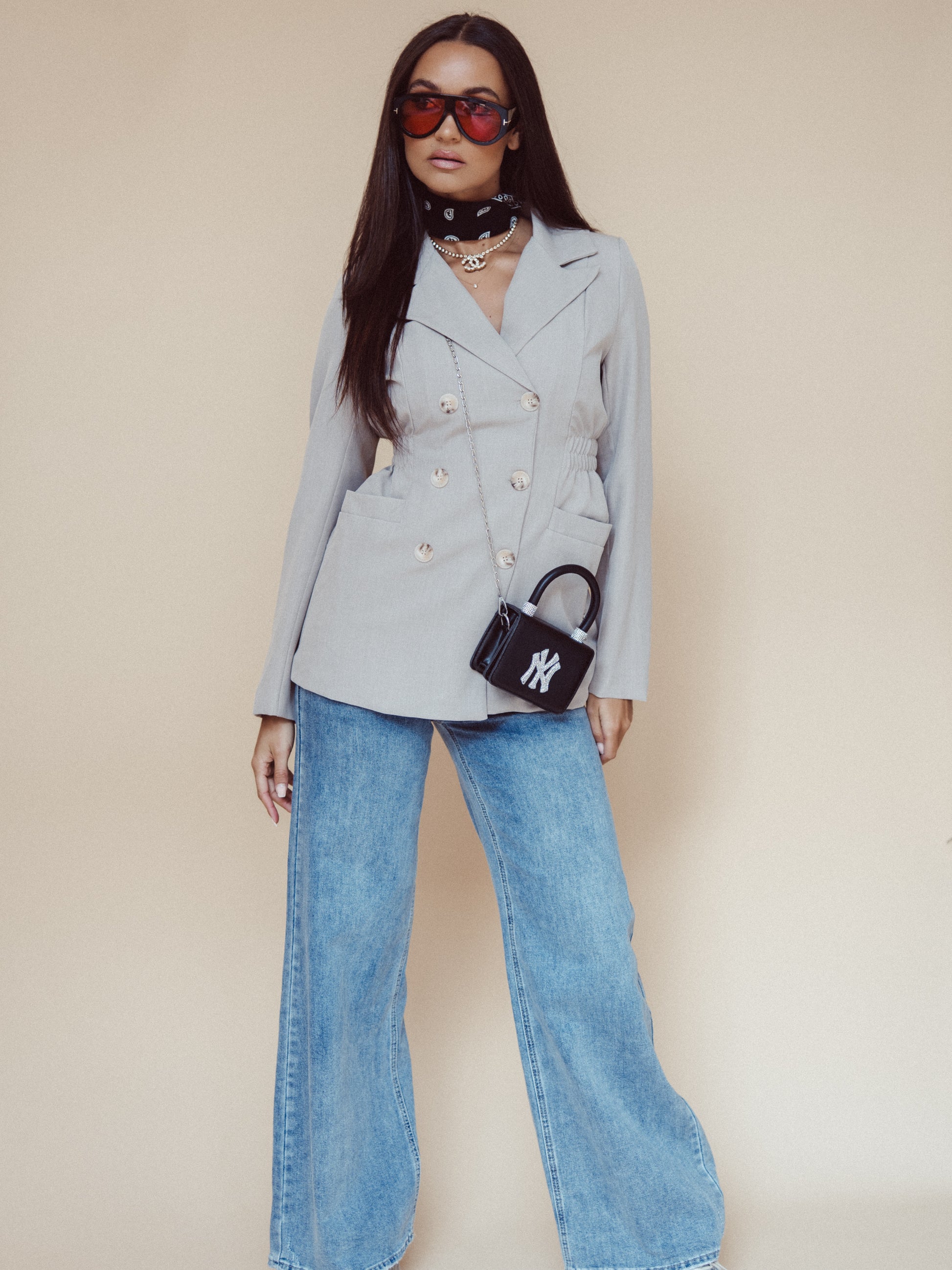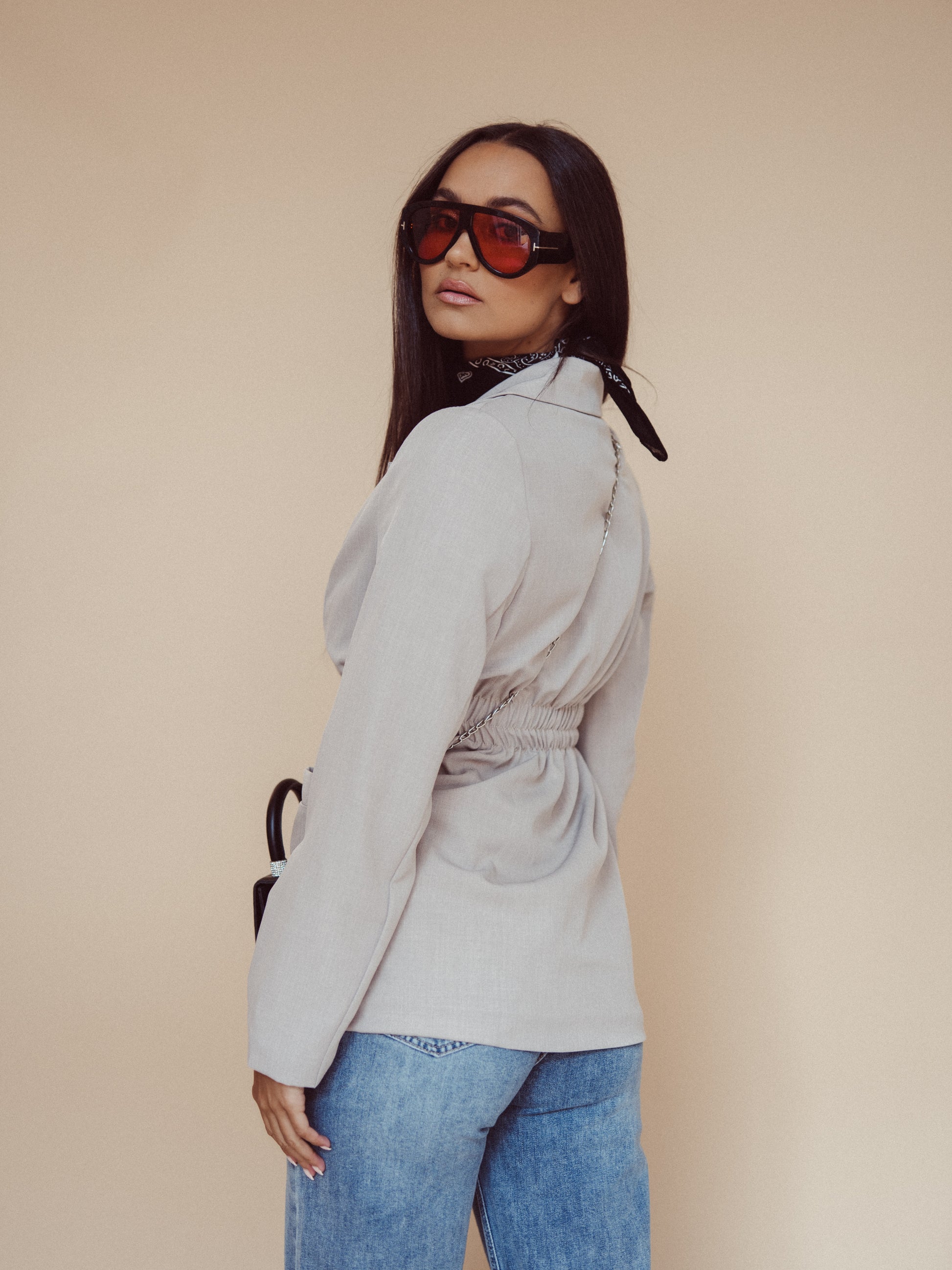 Deze mooie taupe blazer Jane van soepele stof is een echte must-have voor je garderobe. Het elastische effect op de rug maakt de blazer net dat beetje extra speciaal.