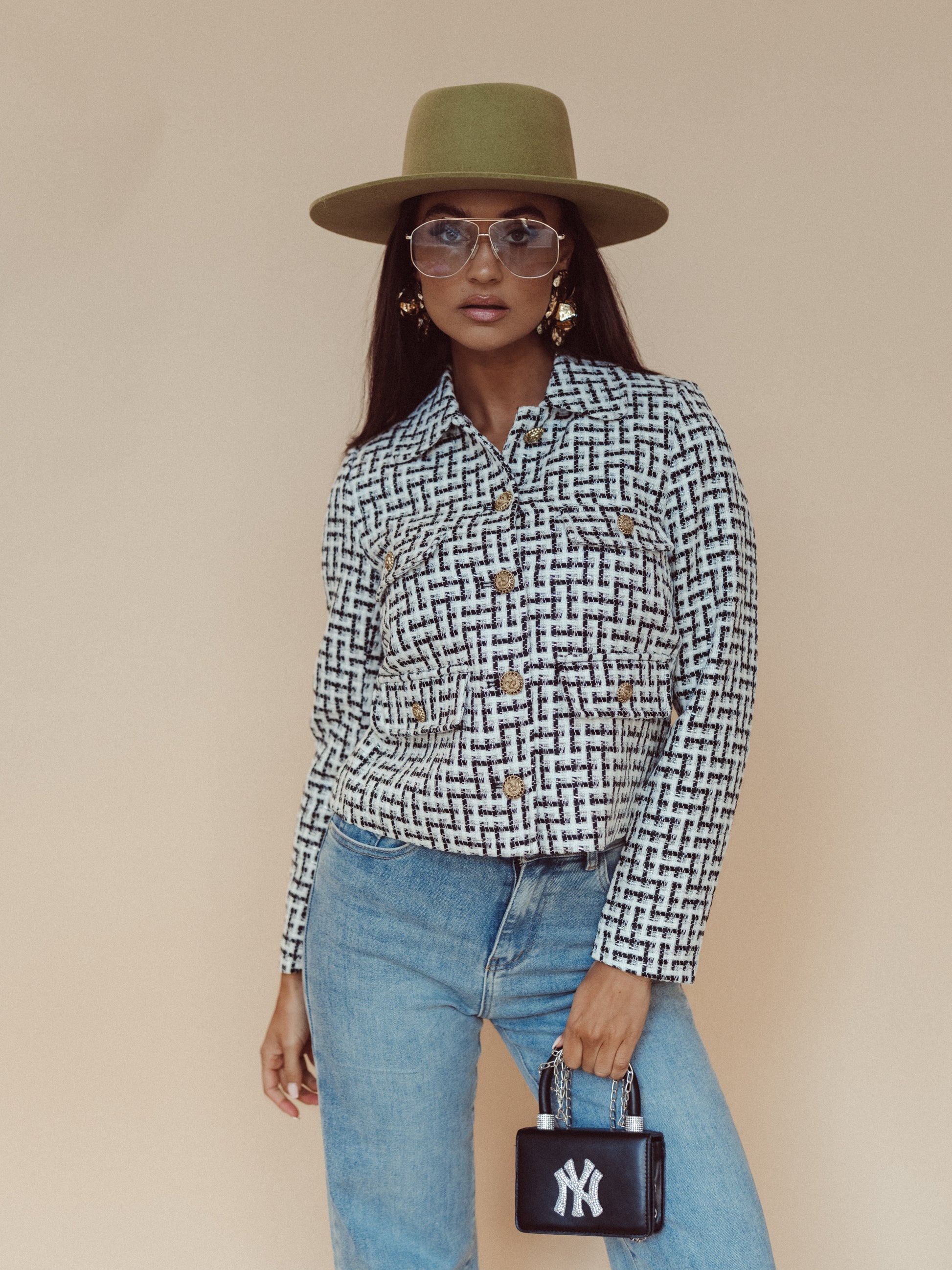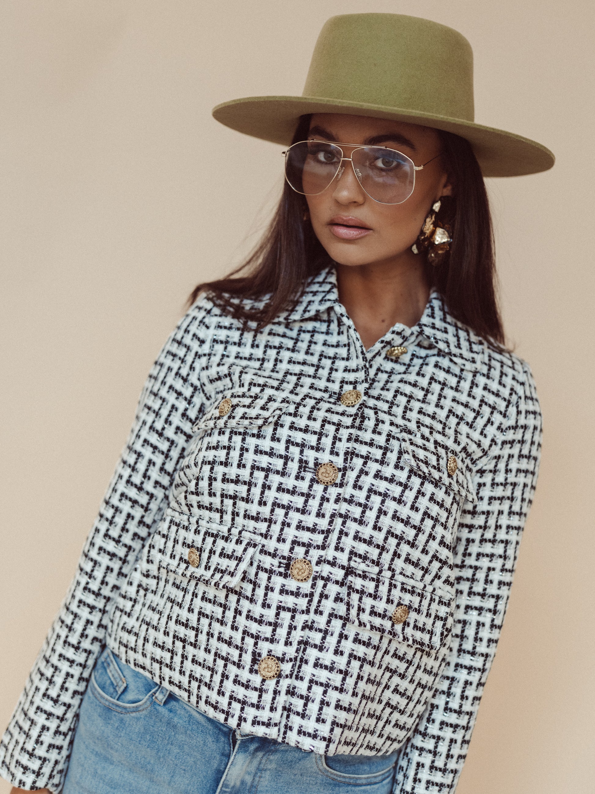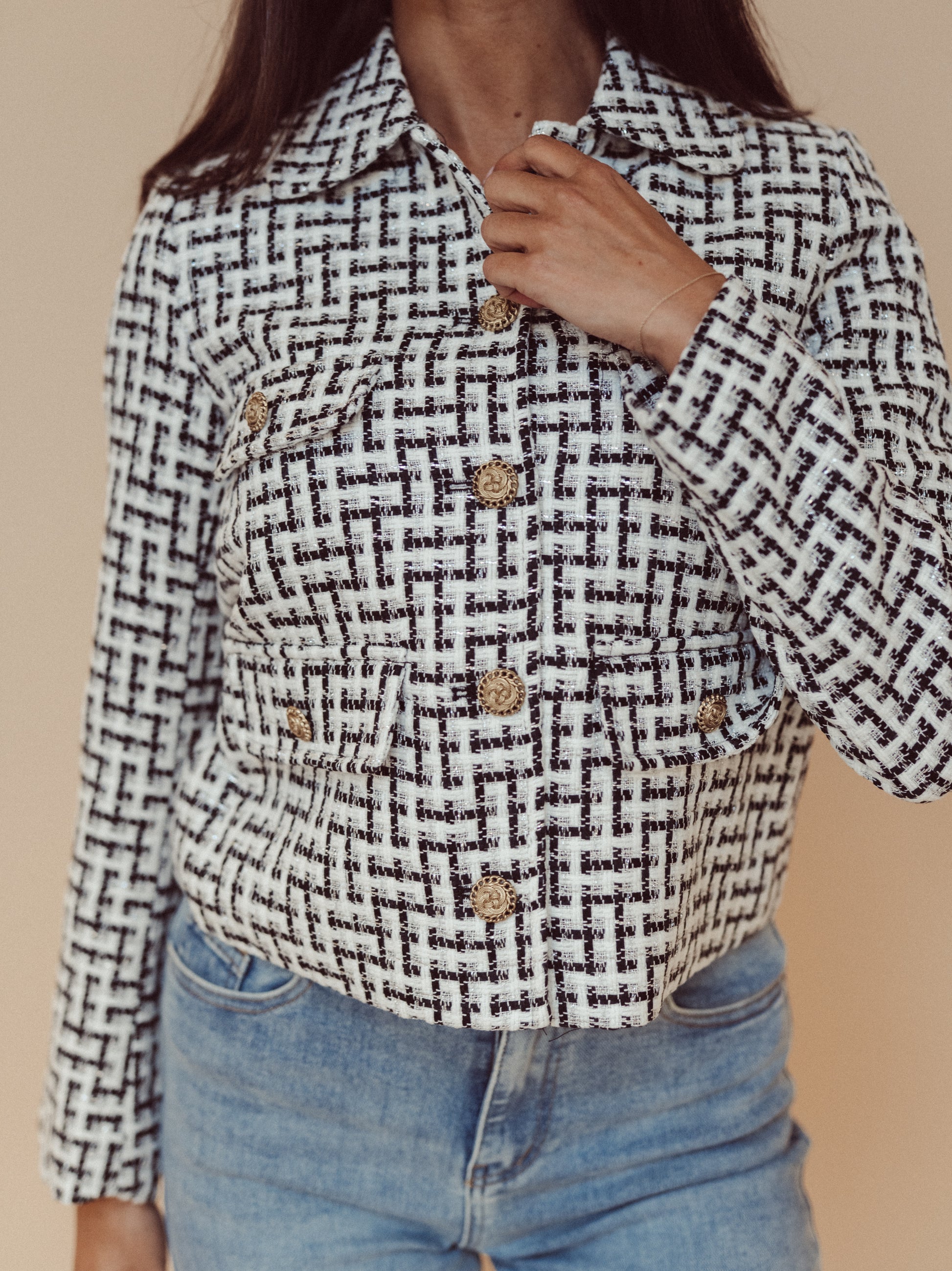 De Lina blazer in zwart-wit is een elegante en tijdloze must-have voor je garderobe.
