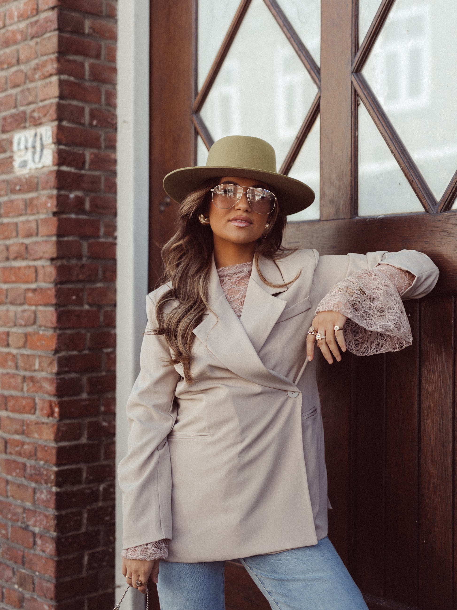 Deze stijlvolle blazer Noor in de kleur beige heeft één knoop en een oversized pasvorm wat helemaal trending is. Ook heeft de blazer twee zijnaden voor een unieke look.