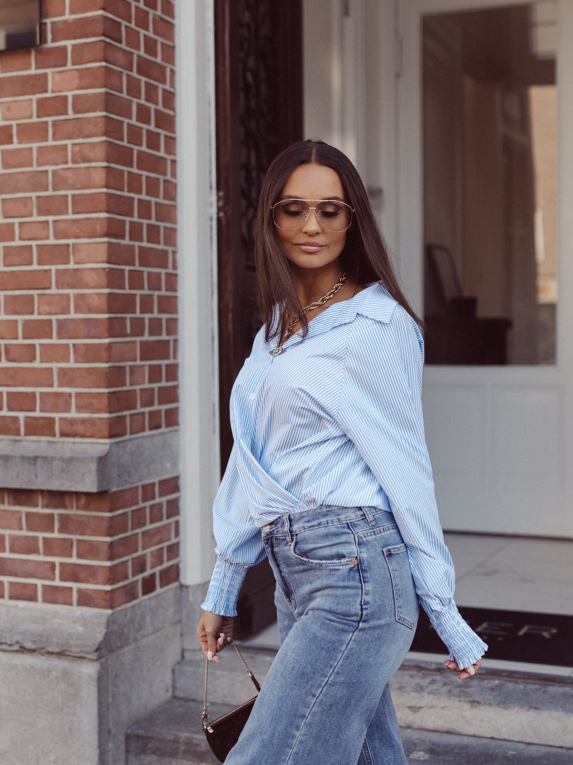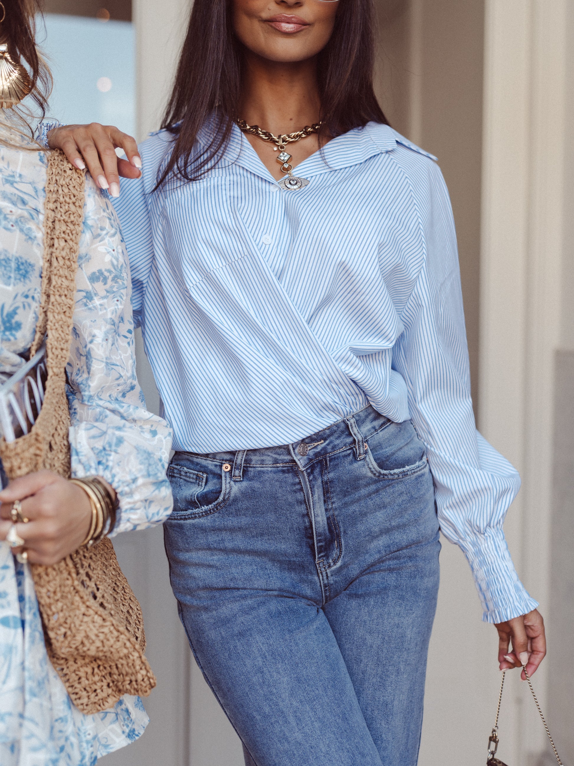 Onze blauwe blouse Lizz met subtiele strepen is een tijdloze toevoeging aan je garderobe. Het smockdetail aan de mouw geeft een verfijnde touch, terwijl het oversized model zorgt voor een stijlvolle én comfortabele pasvorm. Perfect te combineren met een mooie jeans voor een effortless chic look!