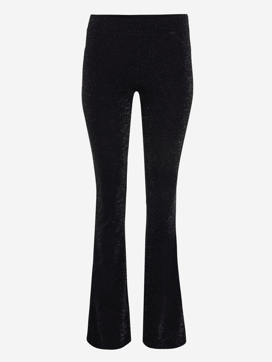 Soepelvallende flared broek. De subtiele glitter zorgt voor een feestelijke look.
