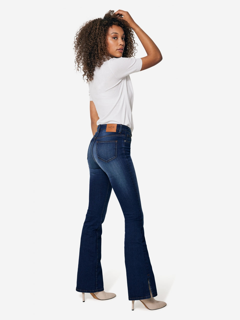 Deze jeans in mid-rise model heeft door de lichte stretch een comforabele fit en heeft lichte flared onderkant. Een splitje voegt een unieke en moderne touch toe.