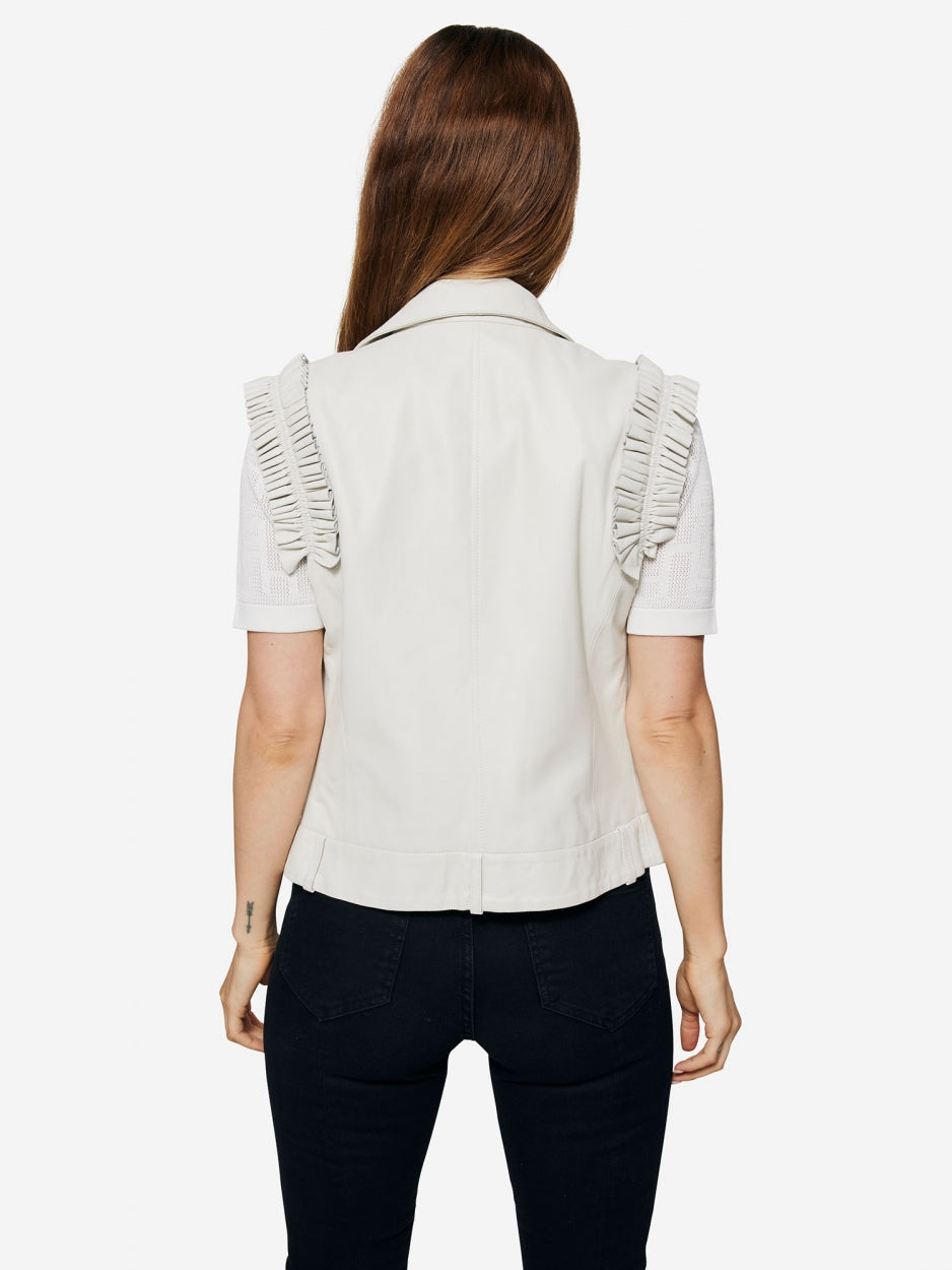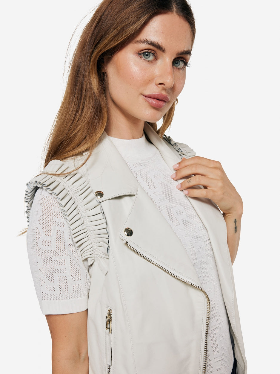 Leren Ruffle Gilet - Wit