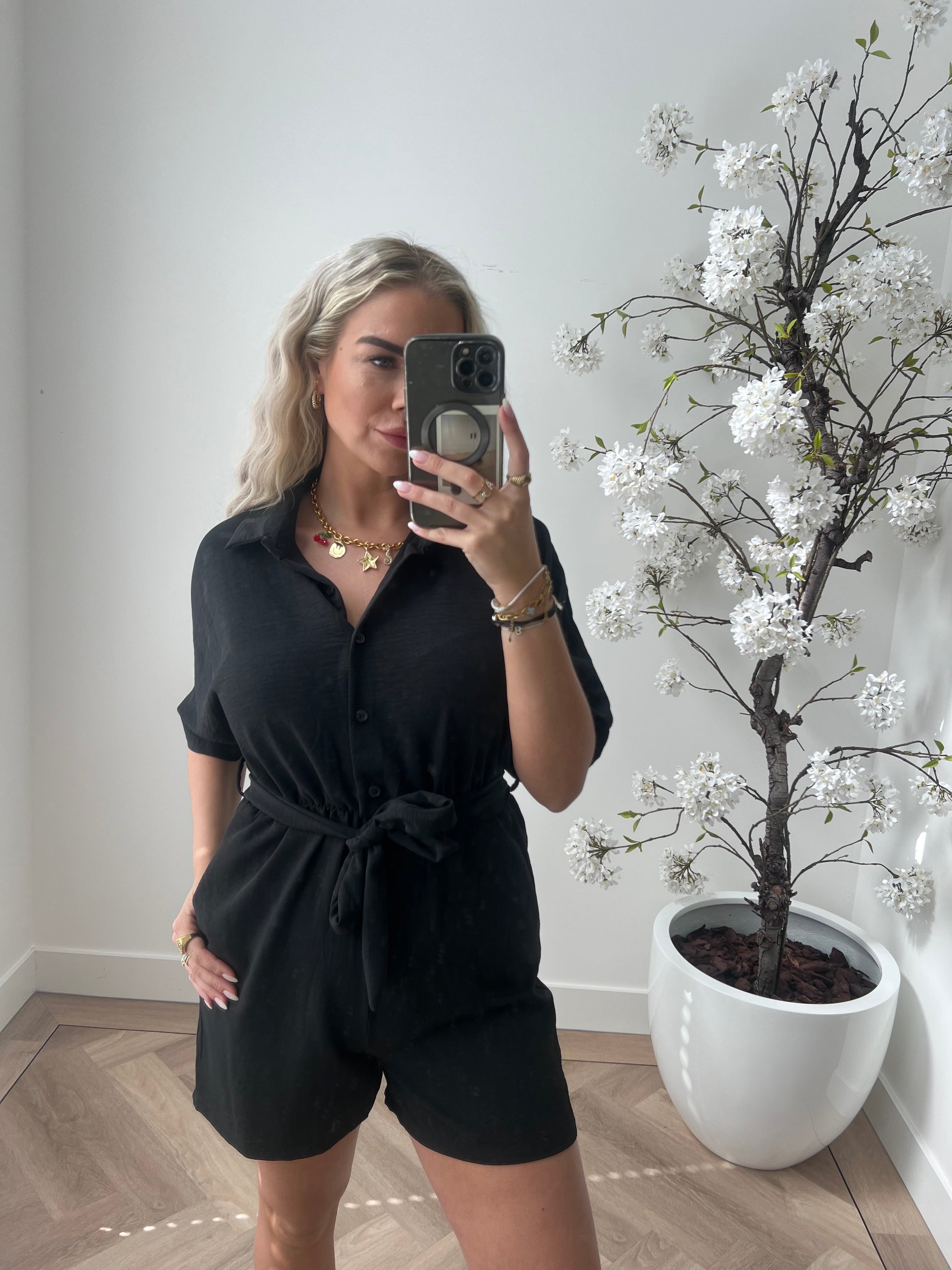 Hoe leuk is dit playsuitje? Het heeft een elegant strikdetail om je middel en is gemaakt van een fijne stof, perfect voor warmere dagen. Voeg dit veelzijdige item toe aan je zomergarderobe! De playsuit is one size.