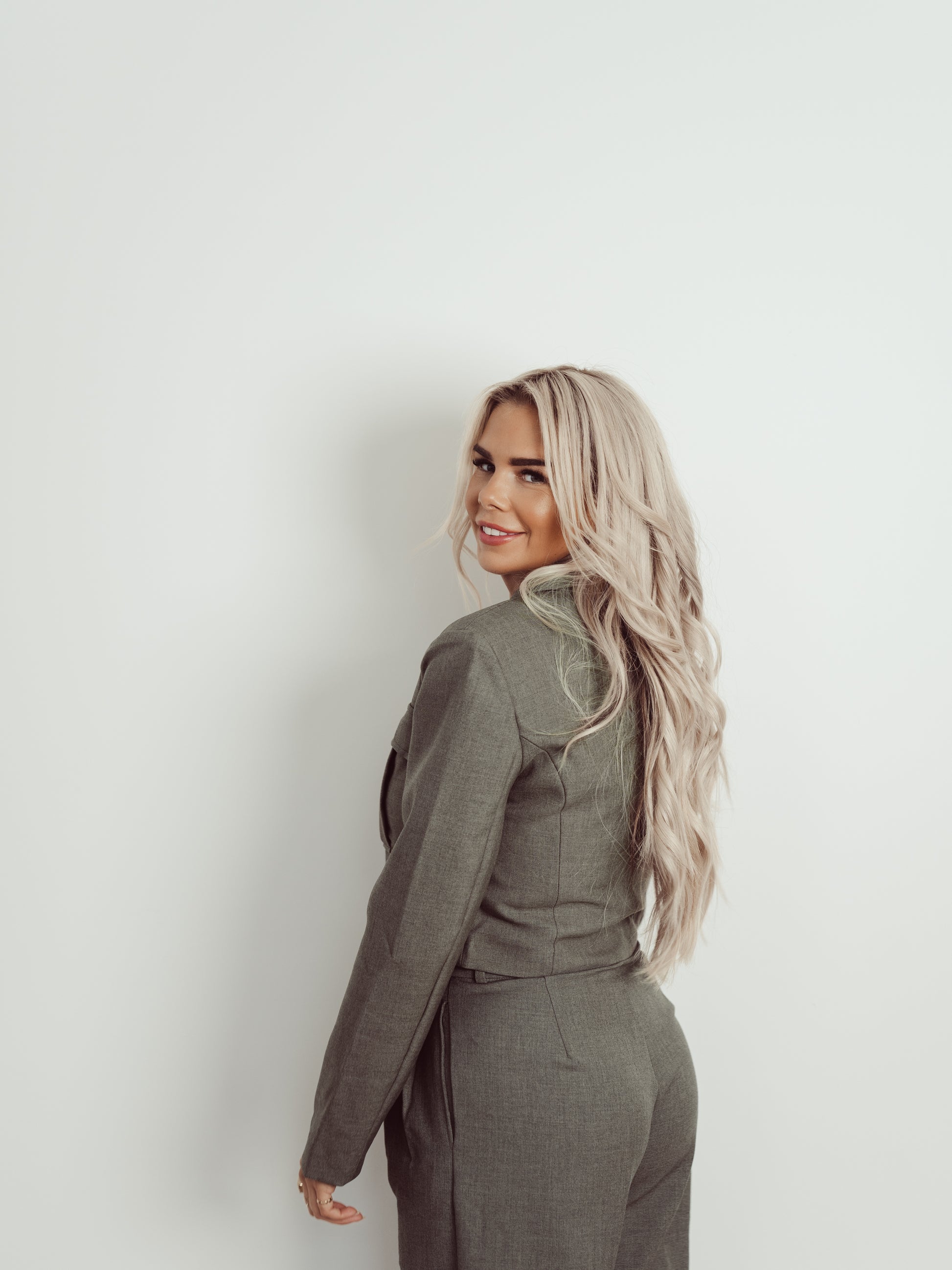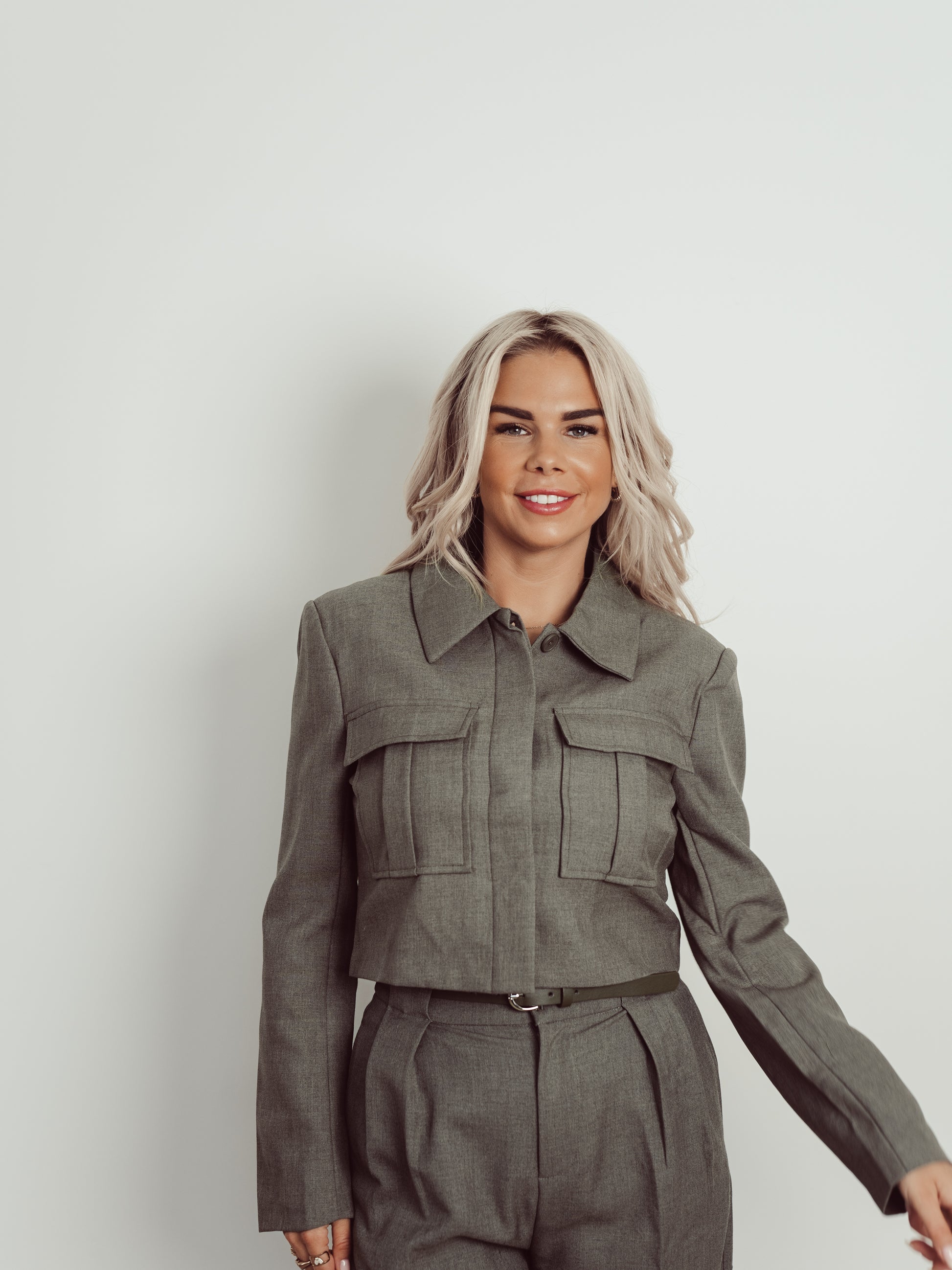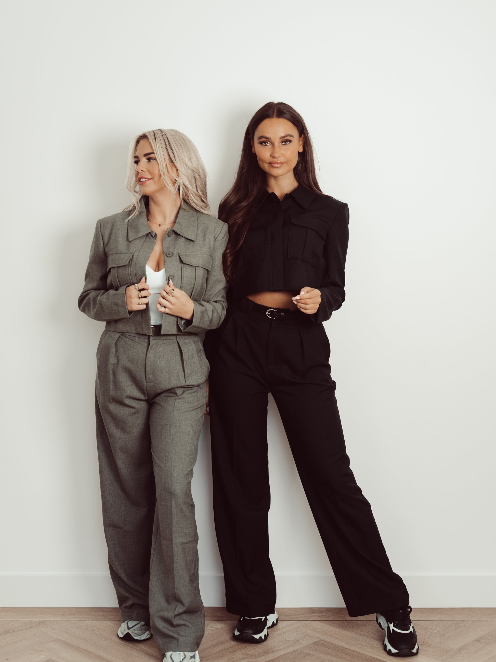 Musthave set! Hoe mooi is deze 2 delige set? De set bestaat uit een pantalon met steekzakken en is afgewerkt met een riempje. Het jasje heeft stoere zakken op de voorzijde. De set valt op maat.