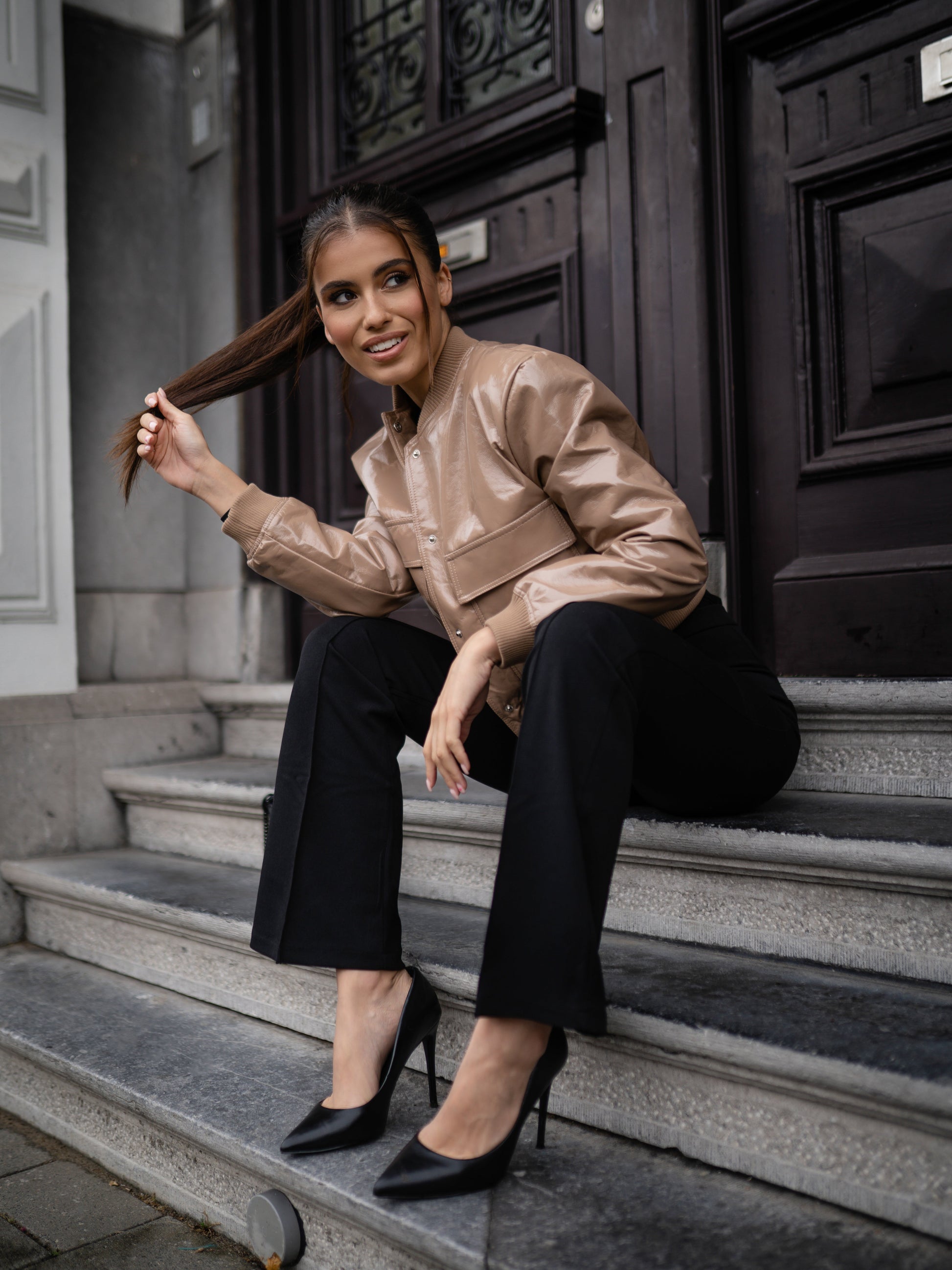 Deze lak bomber is echt geweldig en verkrijgbaar in beige en zwart.