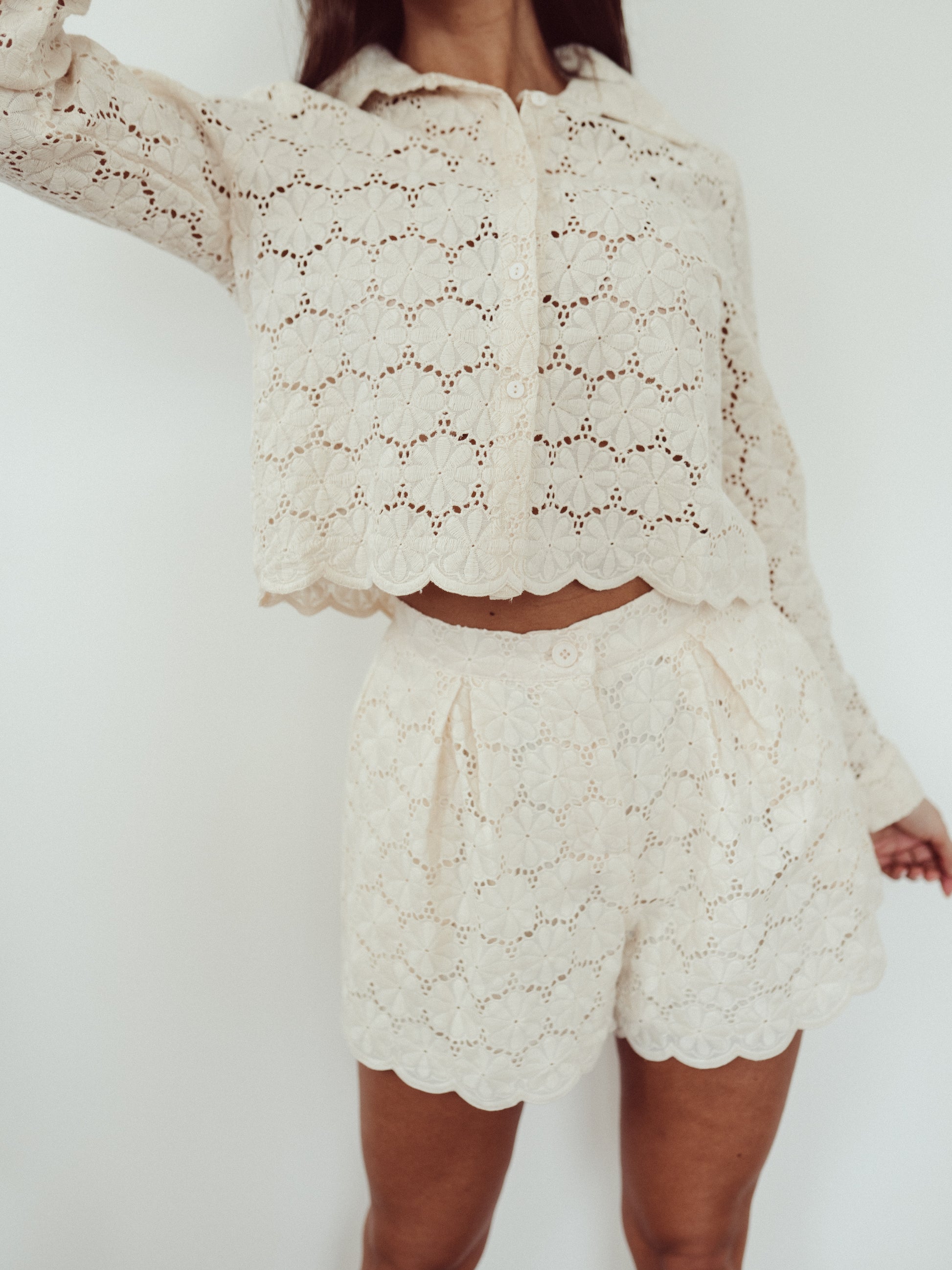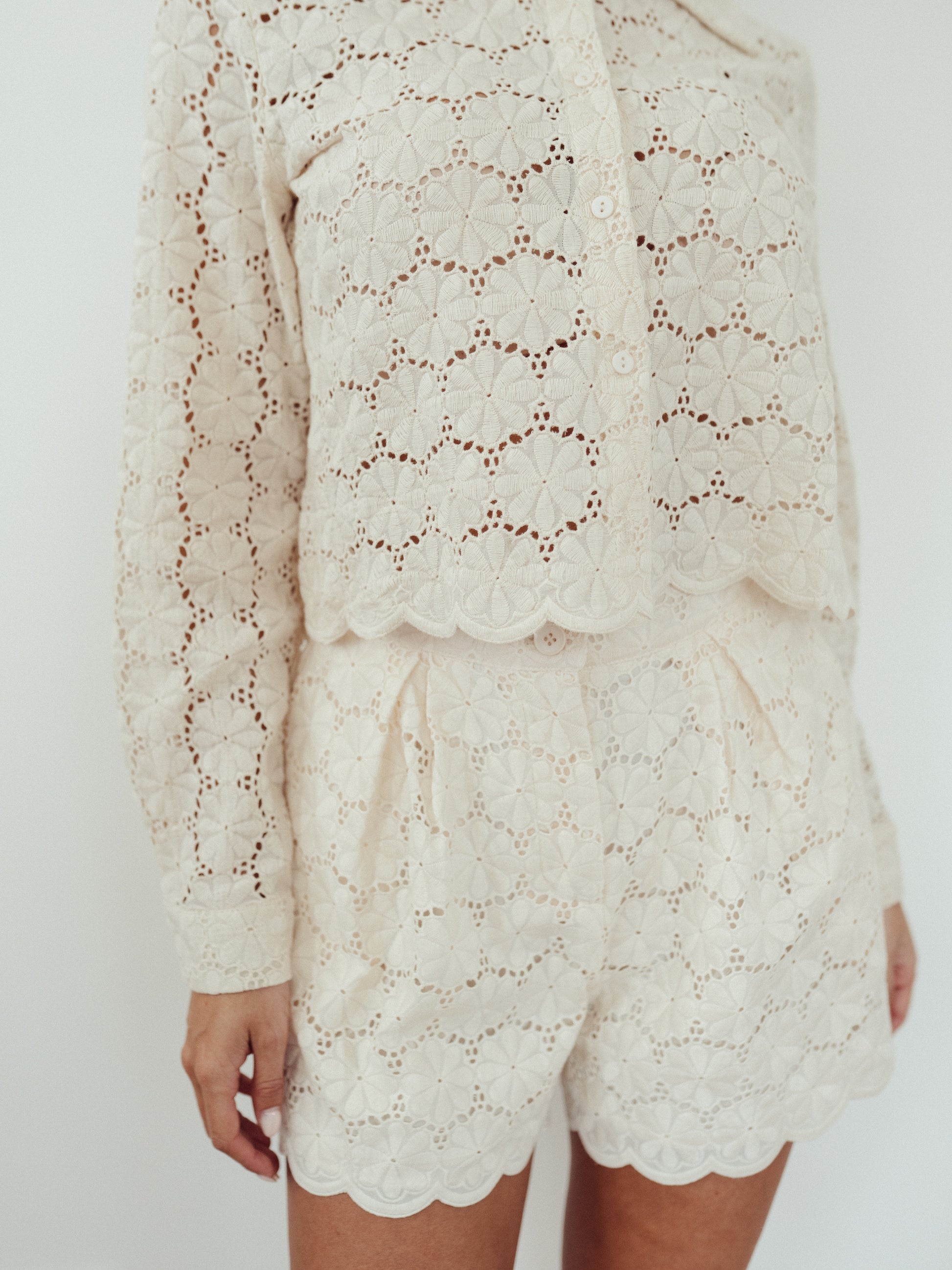 Wijd uitlopend shortje met bloemenprint. Combineer het met onze bijpassende blouse voor de complete look.