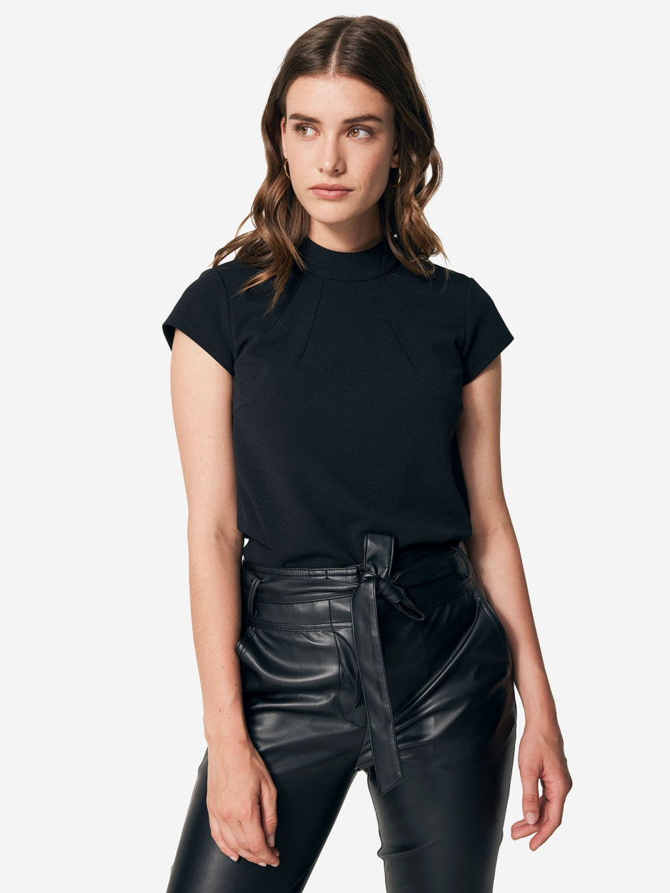 Deze top met rechtopstaande hals heeft een mooie belijning en is gemaakt van zacht, gerecycled crêpe materiaal dat heel comfortabel draagt. Kapmouwtjes zorgen voor een elegante touch.
